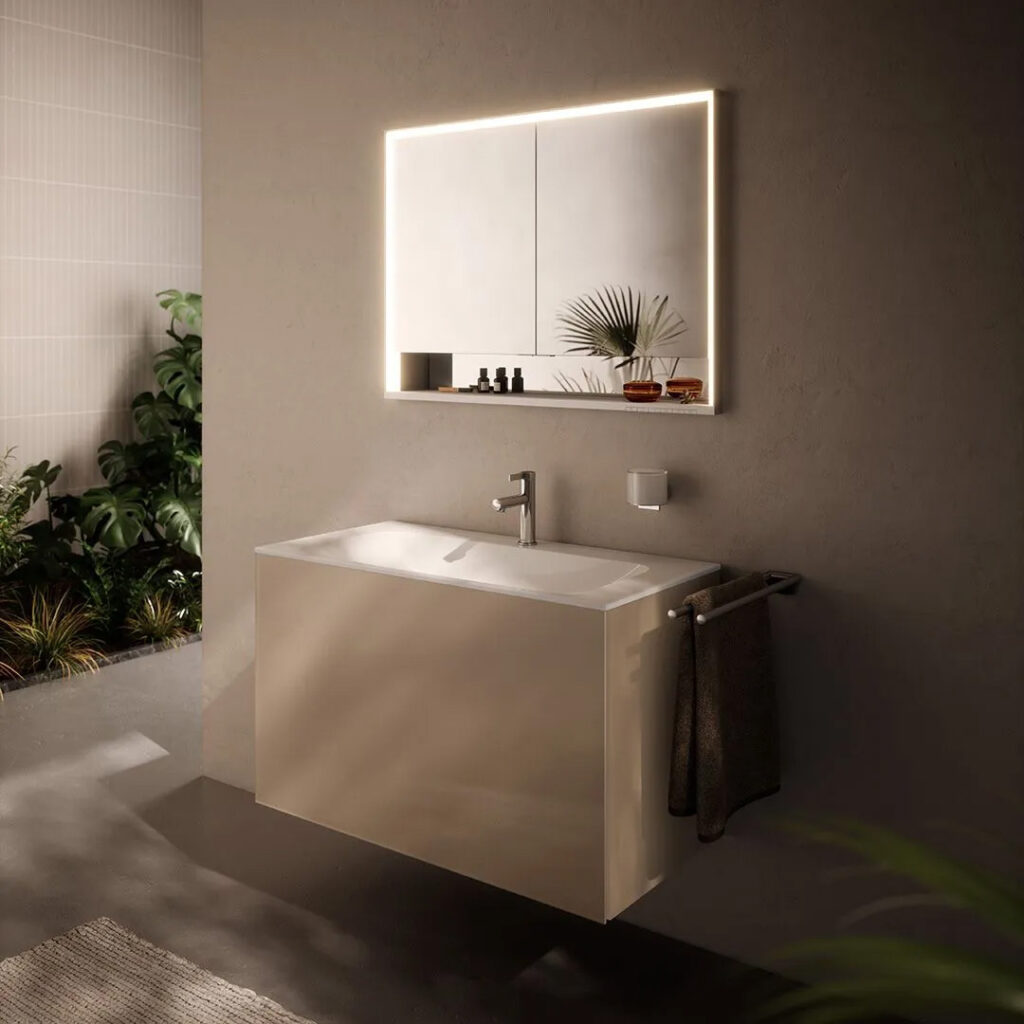 Viele Vorteile – aber die ROYAL LUMOS Spiegelschränke von KEUCO können noch mehr: Die dreiseitige LED-Beleuchtung fasst den ROYAL LUMOS ein wie ein Bild und macht ihn zu einem attraktiven Solitärstück. Als hellster Spiegelschrank des KEUCO Sortiments, mit verschiedenen Beleuchtungsarten und einfacher Bedienung gehört der ROYAL LUMOS zur Top-Ausstattung für jedes Badezimmer. Er sorgt für perfekte Beleuchtung – ob für den ganzen Raum, für das Gesicht oder für eine atmosphärische Akzent-Beleuchtung von Armatur und Waschtisch. Dank unterschiedlicher Lichtquellen für Hauptbeleuchtung und indirekte Beleuchtung bietet der Spiegelschrank ROYAL LUMOS alle Optionen für jede Tageszeit und Stimmung.